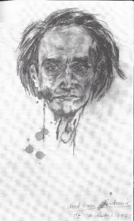 Antonin Artaud w 1947 roku gdy ciężko chory przebywał w przytułku.