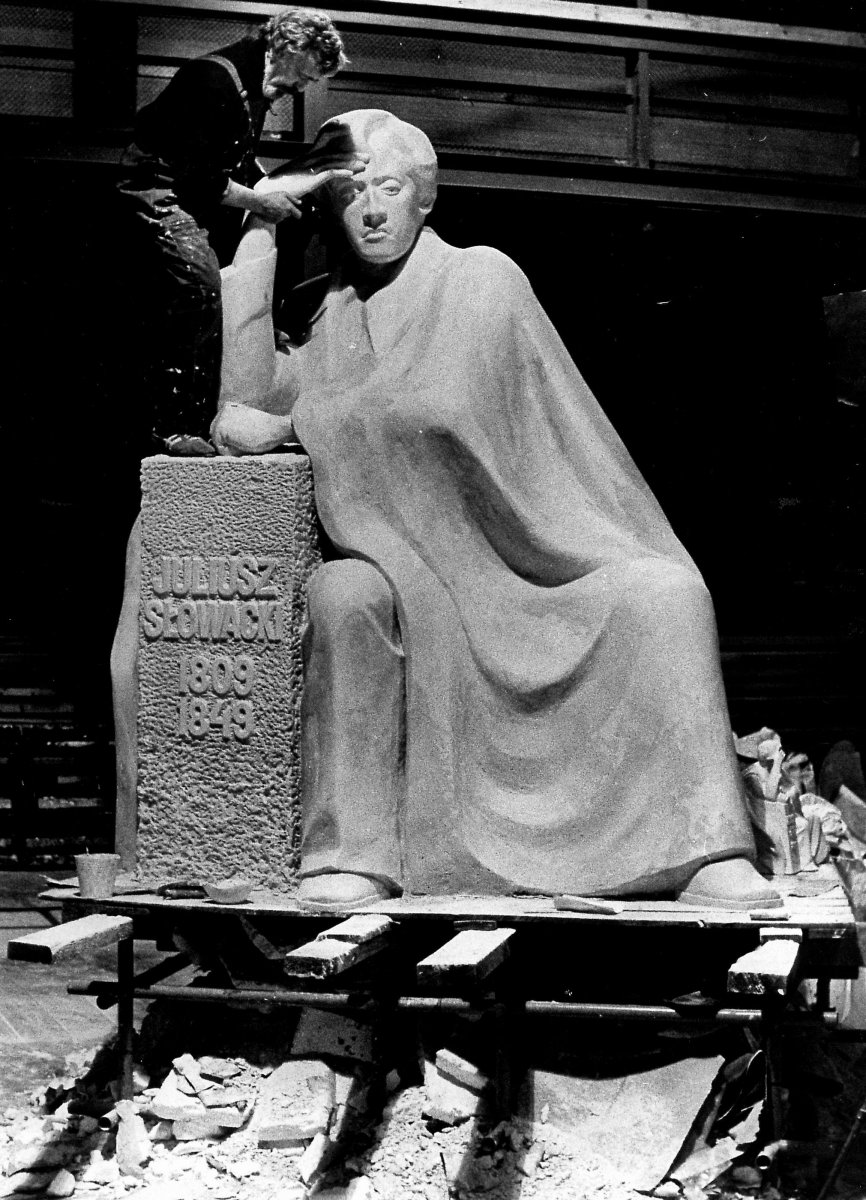 Andrzej Łętowski w trakcie pracy nad pomnikiem Słowackiego. Fot.: Tadeusz Szwed