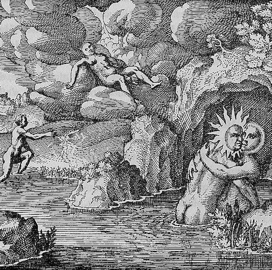 Teatr jako „ alchemia”. Rysunki pochodzą z XVII-wiecznej książki „Atalanta fugiens” autorstwa Michaela Maiera. Autorem rycin jest Matthias Merian.