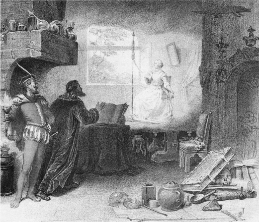 Doktor Faustus w swojej pracowni – rycina autorstwa Rembrandta van Rijna z roku 1652.